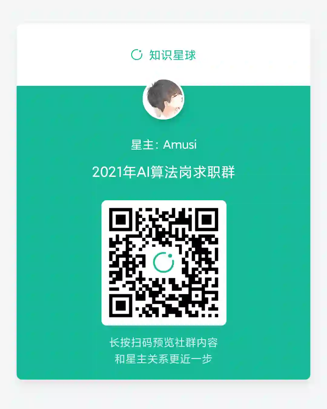 本星球不仅面向2021届、2022届找工作和找实习的学生(研一/研二/大三/大四等),还面向刚入学或已工作的人群。目前已有超过3200+位同学加入。星球旨在分享AI算法岗的秋招准备攻略(含刷题)、面试经验和校招/社招/实习的内推机会(含提前批)、学习路线、知识题库和Offer如何选择等。