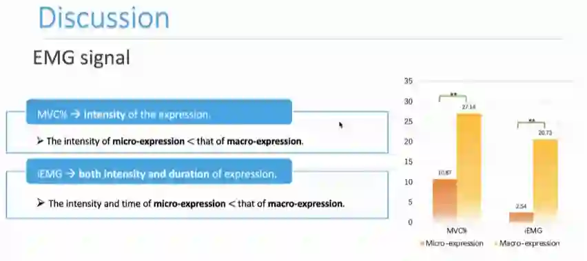 但是如果想要通过肌电信号给出微表情和宏表情之间具体的强度界限相对比较困难。在后续的研究中,鲁同学等人将通过增加表情的样本量,探究体现在MVC%这一指标下的微表情具体强度范围。