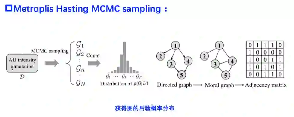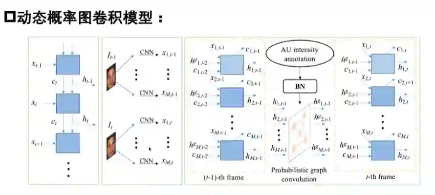 深度学习方法已被广泛应用于自动面部动作单元强度估计,并取得了良好性能。然而,这些方法大多是基于外观的,未能利用AU之间的潜在结构信息。宋博士等人提出了一个新的动态概率图卷积(DPG)模型,以同时利用AU的外观、AU的动态和它们的语义结构依赖来进行AU强度估计。首先,宋博士等人提出使用贝叶斯网络来捕捉AU之间的固有依赖关系。其次,引入概率图卷积,允许对贝叶斯网络结构的分布进行图卷积,以提取AU结构特征。