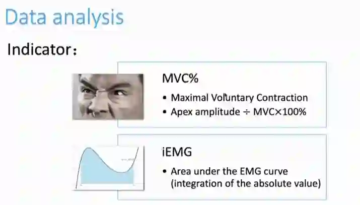 得到表情对应的肌电数据后,鲁同学等人对肌电信号选取了两个指标进行数据分析,分别是MVC%和iEMG。