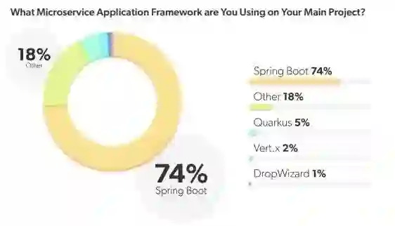 尽管 Spring Boot 仍然占据首位,高达 74%,其次是 Quarkus、Vert.x 和 DropWizard,分别为 5%、2% 和 1%,位列前四。然而,魔鬼就在细节中。Quarkus 在 2020 年有 0.5% 的份额,而 Spring Boot 为 82%。鉴于 Spring 是占主导地位的框架,他们不是将其与 Spring Native 结合起来使用吗,Spring Native 可以让你使用 GraalVM 本机映像编译器将 Spring 应用程序编译成本机映像?