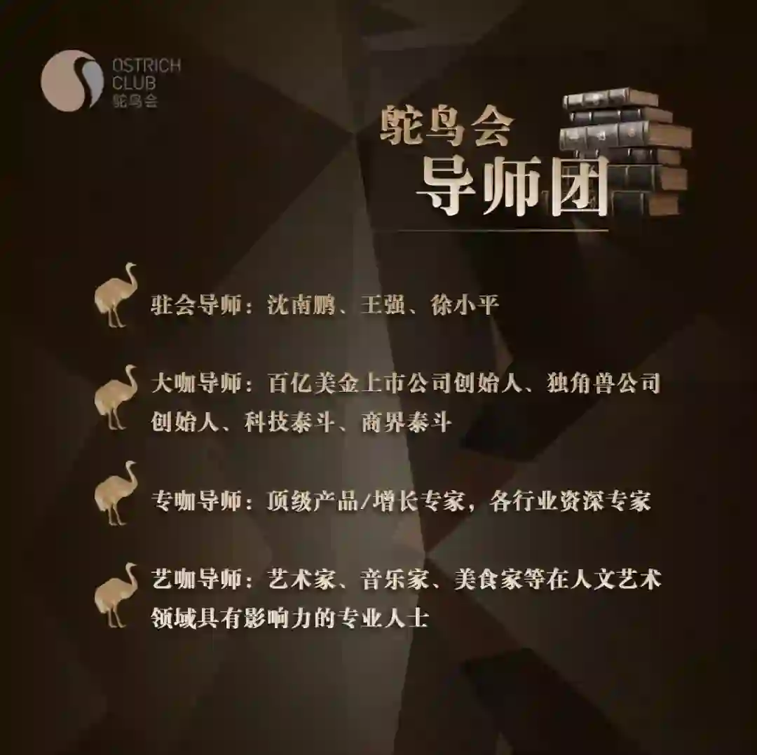 (点击此处查看鸵鸟会的起源👉《红杉资本与真格基金推出高端创业研究班——鸵鸟会,发现新一代创业领袖》)