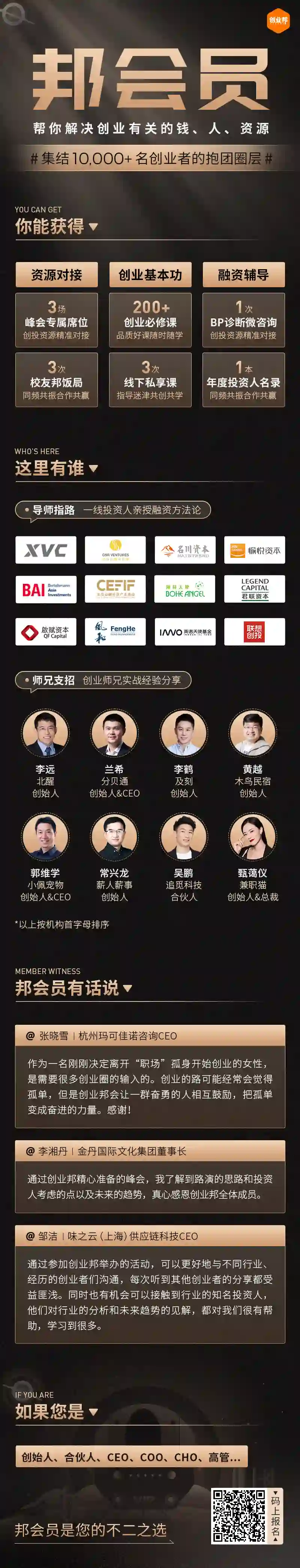 此外,创业邦联合众多知名一线投资机构、为企业提供全方位的