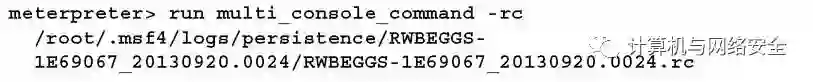 因为persistence脚本没有经过认证,所有人都可以使用它访问被入侵系统;当发现或者渗透测试完成后,它应该从被入侵系统中立即删除。可以通过如下resource命令来删除脚本和确认资源文件的位置已被清理。