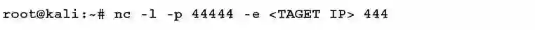 该命令将调用Netcat(nc)来监听(-l)传入的流量,执行(-e)流量的转移动作到目标的444端口。端口并不固定,无论是监听/转发主机还是目标主机,端口不必相同。