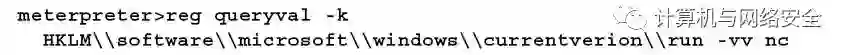例如,如果目标操作系统是Windows 7,使用meterpreter获得一个目标系统交互命令shell,之后输入以下命令行来修改注册表:
