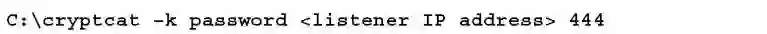 使用cryptcat,确保有一个准备好的监听者,并配置强壮的密码,使用如下命令进行配置: