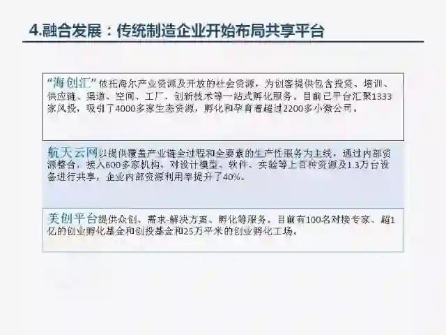 四、传统制造企业开始布局共享平台,加快了互联网与制造业的深度融合,带动了传统企业技术和产业升级;