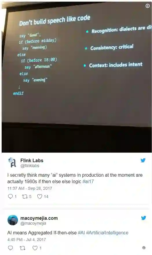 但是常常不太可能从局外人的角度看清这些公司使用AI的程度。经久不衰的笑话是,几家初创公司仅仅使用基本的if-then循环语句,就冒充自己开发的产品是AI。
