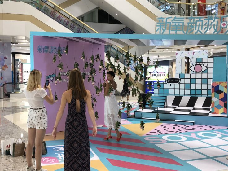 品牌们在快闪营销中的竞争,本来就是一场有关颜值的大型选秀,匆匆路过购物中心的消费者们很直接,谁更好看更有趣,才为谁驻足。