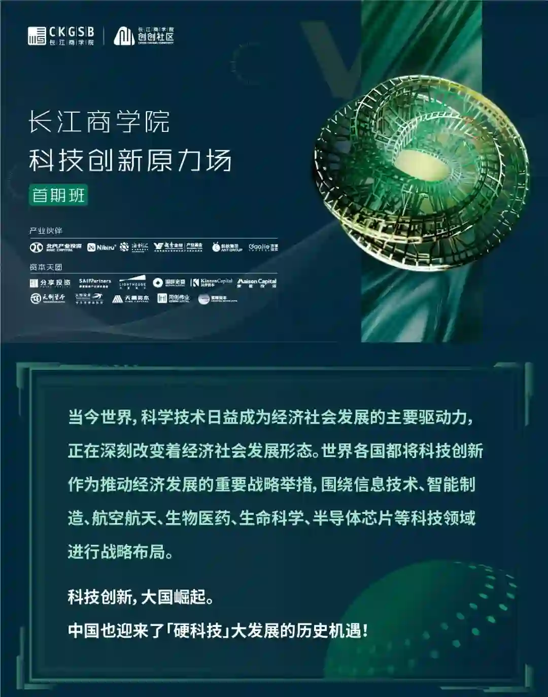 长江商学院「科技创新原力场」携手11家资本天团,6家产业合作伙伴,从新知迭代、资本扶持、产业落地、视野开拓等方面,为参课同学提供真实价值链接。