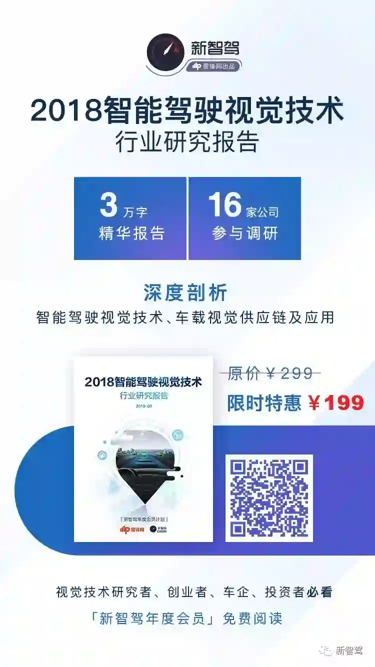 9 月 3 日,雷锋网新智驾正式对外发布了《2018 智能驾驶视觉技术行业研究报告》,对智能驾驶技术感兴趣的读者可加入【新智驾会员计划】免费阅读本报告,也可以通过官方渠道单独购买后进行查阅。