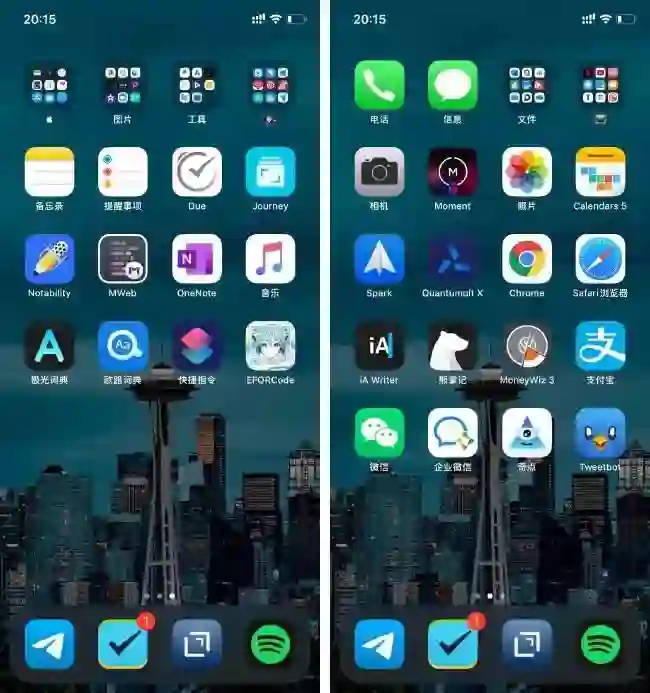 我的手机桌面主屏尽量保证简洁、常用应用随手就能够到,但是不能为了简洁而牺牲功能性。iOS 这边,就是只能尽量多塞 + 文件夹伺候。