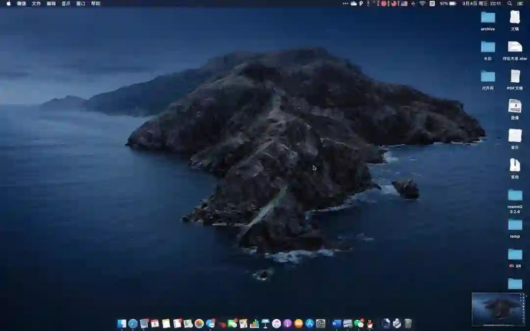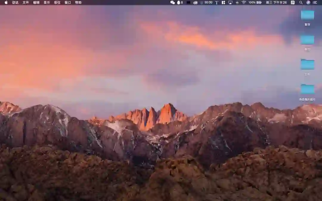 Mac:桌面继承了之前 Mac 上备份的东西,之后也没怎么打理,但东西基本不在桌面上留。Mojave 有了堆叠之后,好管理了不少。Dock 上(基本)严格按照官网 demo 图,有什么放什么,用不到也没关系,看着舒服就行