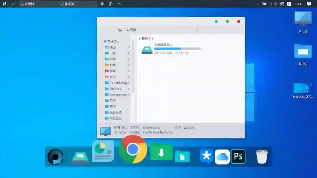 PC:桌面上除了一个放临时文件的和一个不知道该何处安放的文件,只留一个回收站。任务栏就比较随性了,Edge 把网页变成 App 这个功能还挺有意思的,追漫画还不错,ShareDrop 用来和 Mac AirDrop 用。