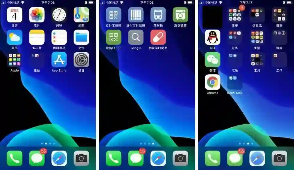 根据自己的使用频率偏好,把最常使用的 App 放在 「C 位」,以手指最方便舒服按到为标准;