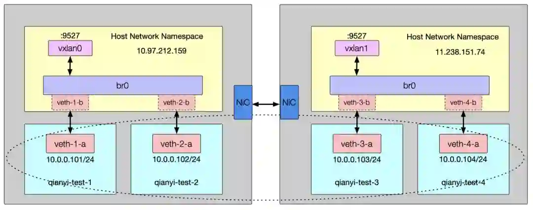 这节就介绍到这里了。当然 Overlay 网络方案也不止 VXLAN 这一种方式,只是目前很多主流的方案都采用了这种方式。其他的 Overlay 模式看上去眼花缭乱,其实说白了,无非就是 L2 over L4,L2 over L3,L3 over L3 等等各种包装方式罢了,懂了基本原理之后都没什么大不了的。网络虚拟化的设备和机制也有很多[18],细说的话一天都说不完,但是基本的网络原理掌握之后,无非是各种协议包的流转罢了。