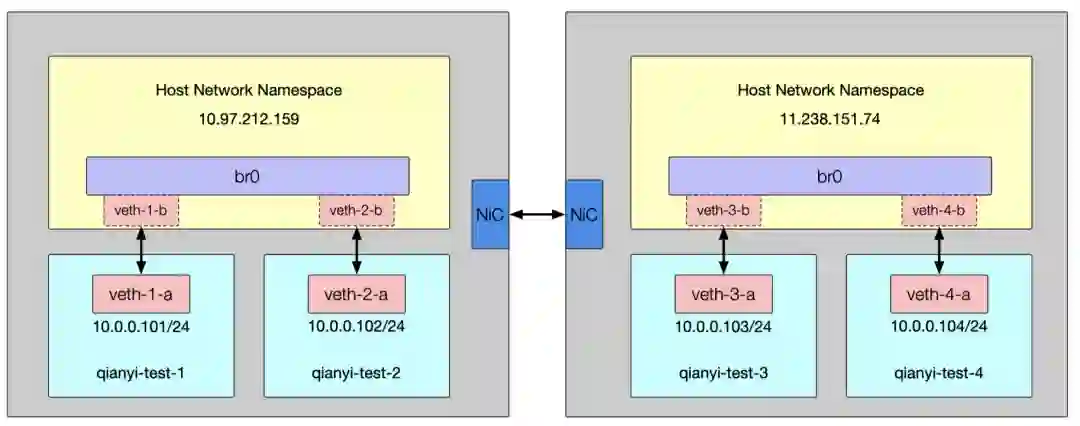 在做的。这个方案优缺点都很明显,最大的优点自然是性能,实打实的直接转发(性能整体比宿主机层面的通信低 10%,VXLAN 可是20% 起步,甚至 30%)。缺点也很明显,这种方式要求宿主机之间是二层连通的,还需要对基础设施有掌控权(编辑路由表),这个在云服务环境一般较难实现,另外规模越来越大时候的路由表规模也会随之增大。这种方式原理上比较简单,图不画了。