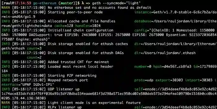 当处于轻客户端模式下时,以太坊客户端会将基本上不同的配置和协议经理具体化。当以太坊启动一个轻客户端时究竟发生了什么,对此感兴趣的用户可以参考我下面的问题。