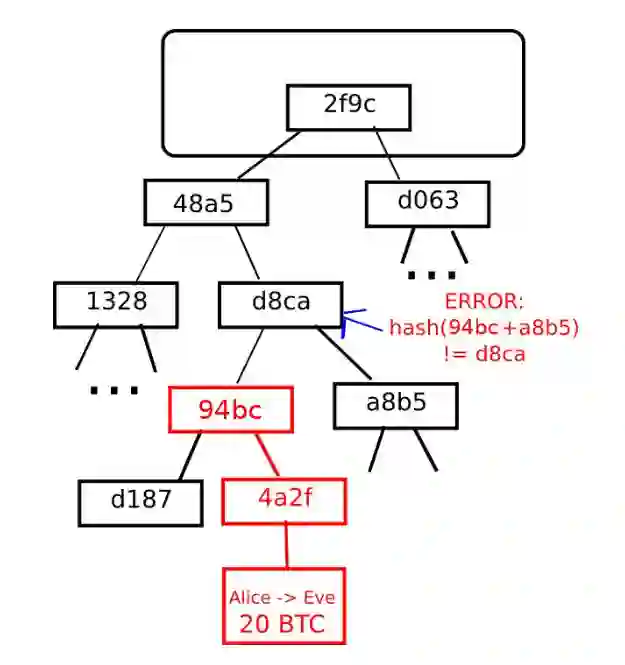 通过 Merkle 树的证明和验证,所有的这些可以被归结为次线性复杂度。当无法获取来自区块链的数据时,或无法检查出何时验证状态交易指数时,客户端可以在点对点网络中向其他参与者发出警告。
