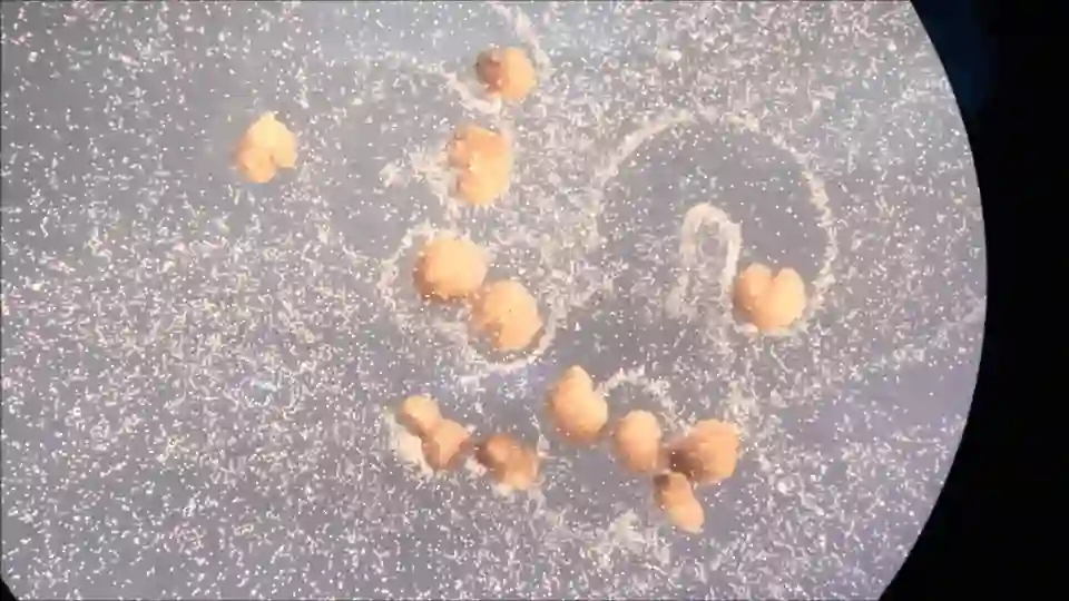 从早期青蛙囊胚中取出干细胞,将其解离并置于盐水溶液中(A),在那里它们凝聚成包含约 3000 个细胞的球体。球体在 3 天后在其外表面上形成纤毛。