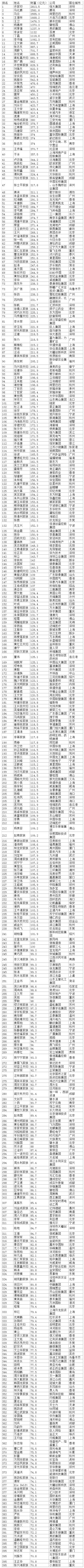 其他西部省份(自治区)新疆、贵州、宁夏、甘肃各有一两位。中部省份安徽、湖南、湖北、江西、山西各5位、4位、4位、2位、1位。