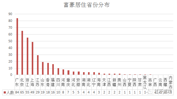 图2.富豪居住省份分布 数据来源|福布斯,制图|杠杆游戏·张银银