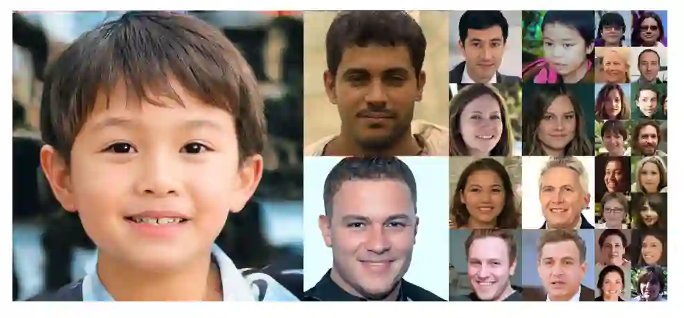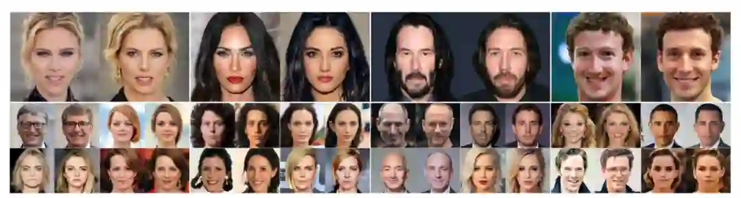 图 5:FFHQ 重建结果。StyleALAE 对未见过的图像的 1024×1024 重建结果。