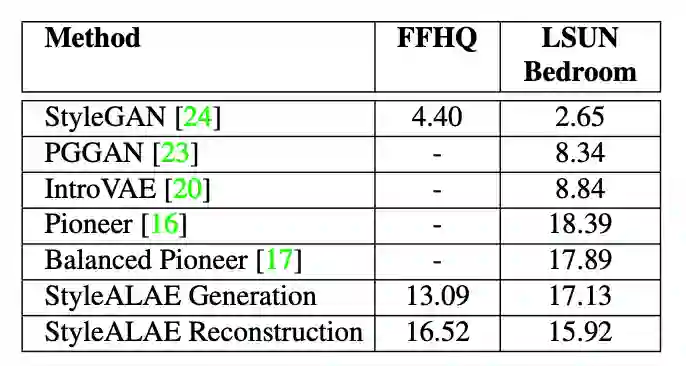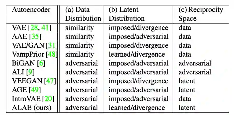 此外,研究者还展示了 ALAE 与其他自编码器的关联,详见下表: