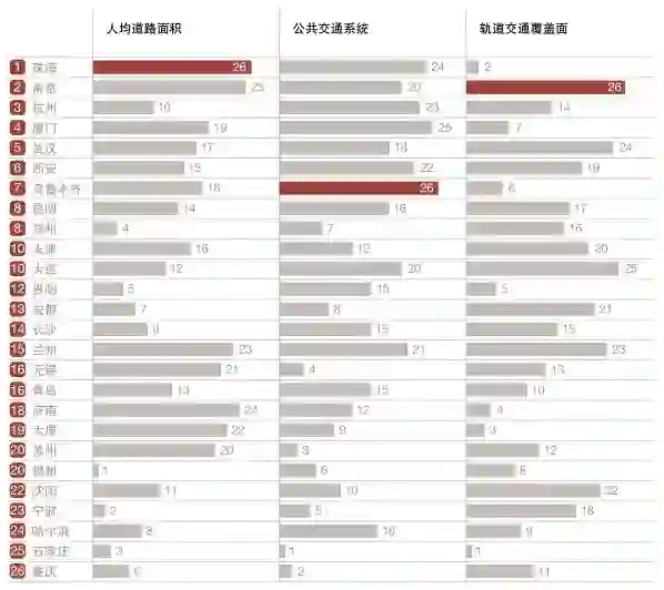 同时我们还注意到,武汉和西安的排名较去年都有所提高。这两个城市排名的上升同样得益于城市交通的高速发展。