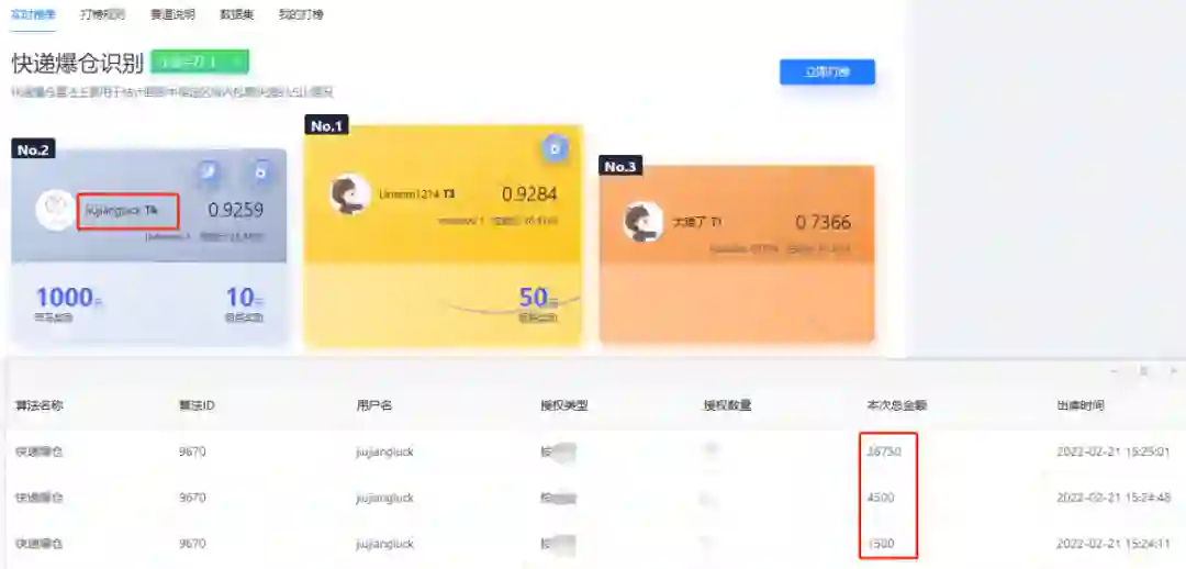 算法打榜地址: