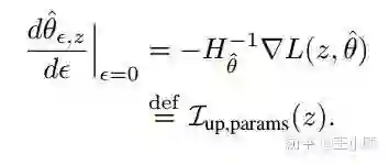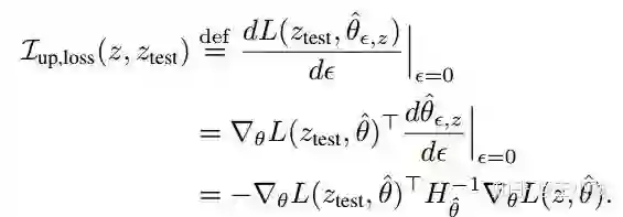这个也就是影响力函数的表达式 ,根据这个定义,作者推导出了提升某个训练样本的权重或者对训练样本施加轻微扰动之后对特定测试样本损失函数的影响: