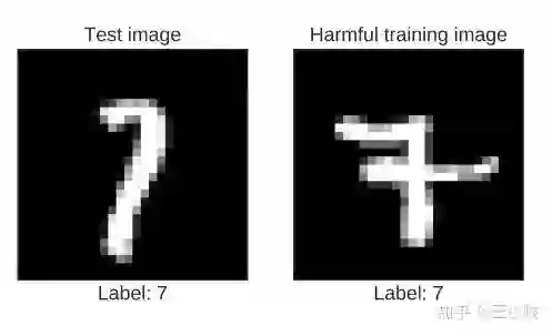 通过影响力函数的计算可以发现,对下图的测试样本7来说,右边的训练样本的存在对该样本的判定是有害的。
