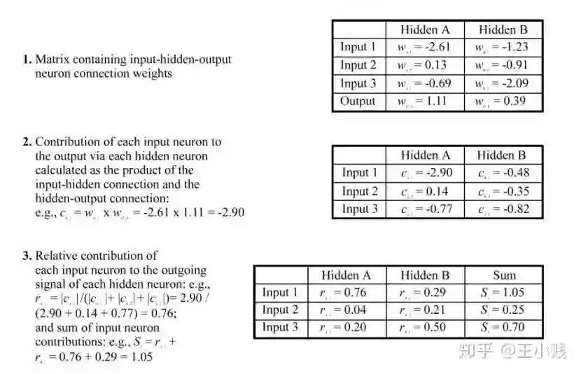 基于统计方法的敏感性分析方法中一个比较有代表性的工作是Olden等人2002年在Elsevier上发表的《Illuminating the “black box”: a randomization approach for understanding variable contributions in artificial neural networks》 ,虽然也是来自于“远古时期”的智慧,却是我个人非常欣赏的一个工作,现在看来依然觉得非常牛逼。这个工作的步骤如下: