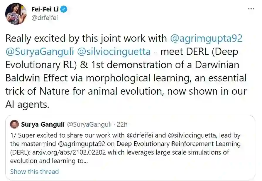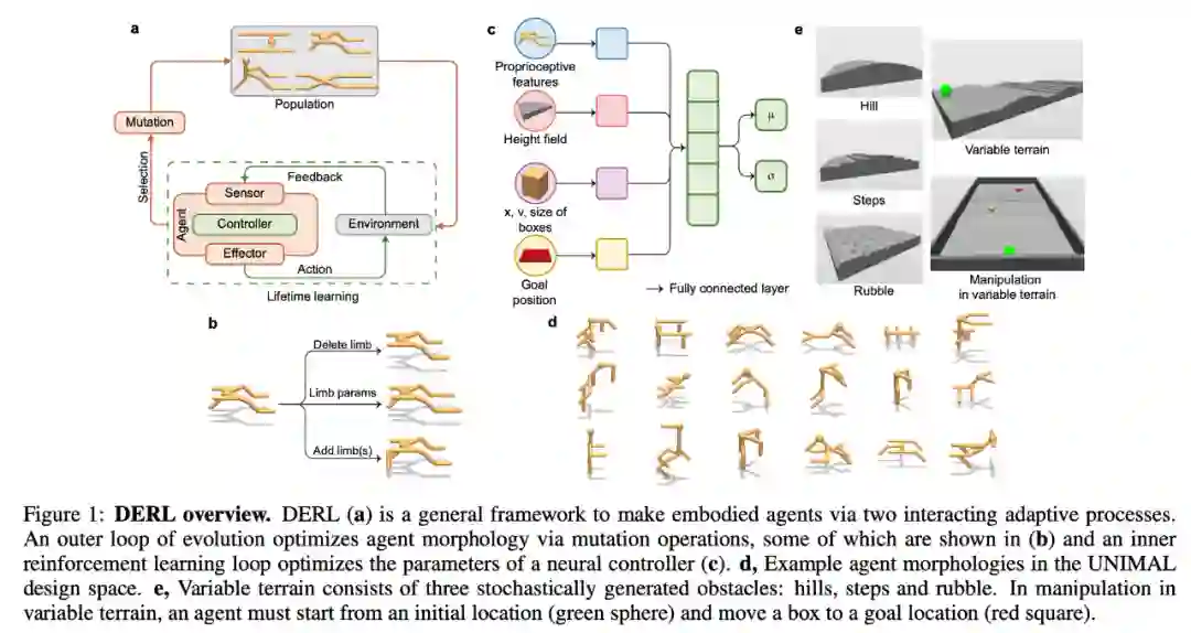 智能体是人工智能领域的一大研究课题,并且也有非具身与具身智能之分。当前,AI 领域更多关注非具身认知,而创建具身智能体非常具有挑战性。近日,斯坦福李飞飞等学者提出了一种新的计算框架——深度进化强化学习(DERL), 基于该框架创建的具身智能体可以在多个复杂环境中执行多项任务。此外,该研究还通过形态学习首次证明了演化生物学中的鲍德温效应。