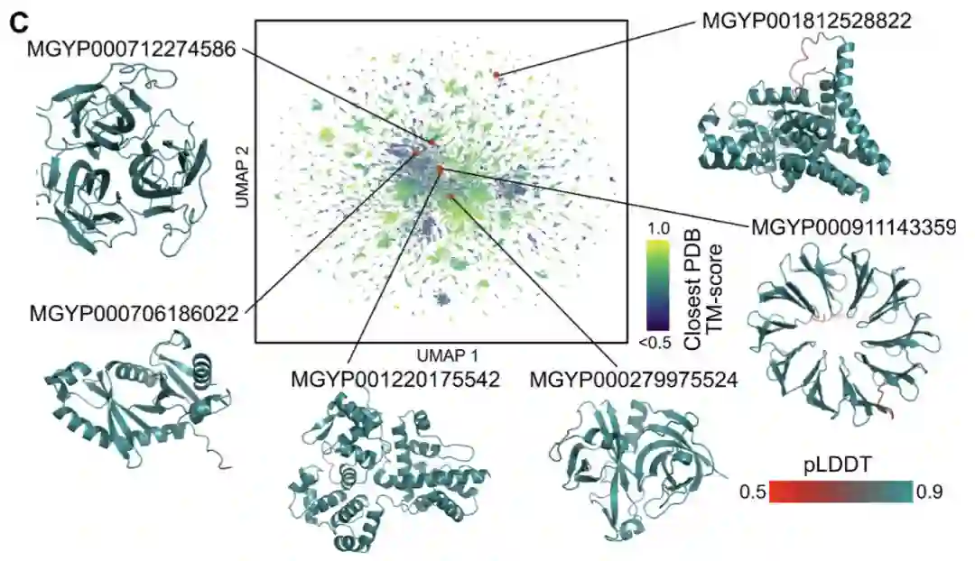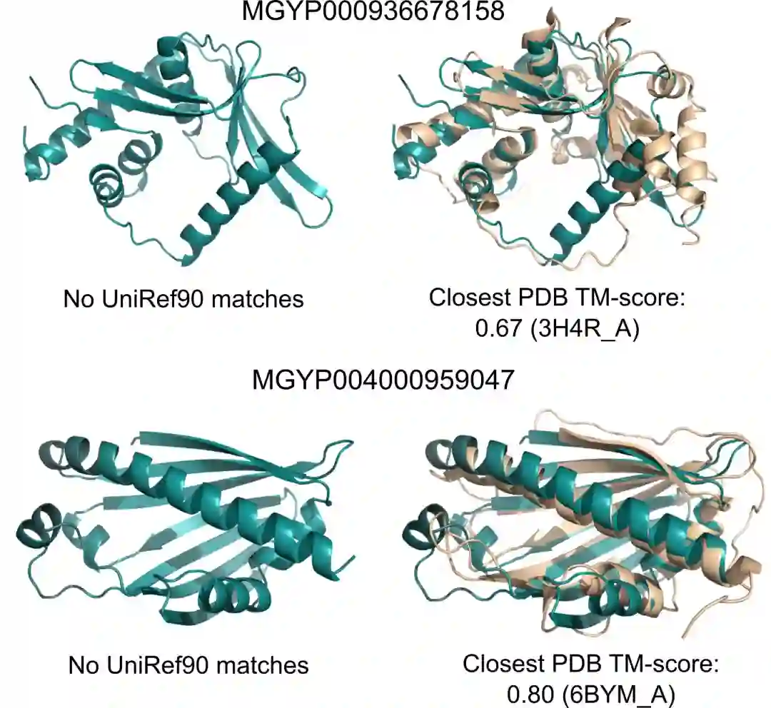 除了基于结构的工具来识别远端同源性和保护性之外,用ESMFold进行快速准确的结构预测,还能在大量新序列集合的结构和功能分析中发挥重要作用。