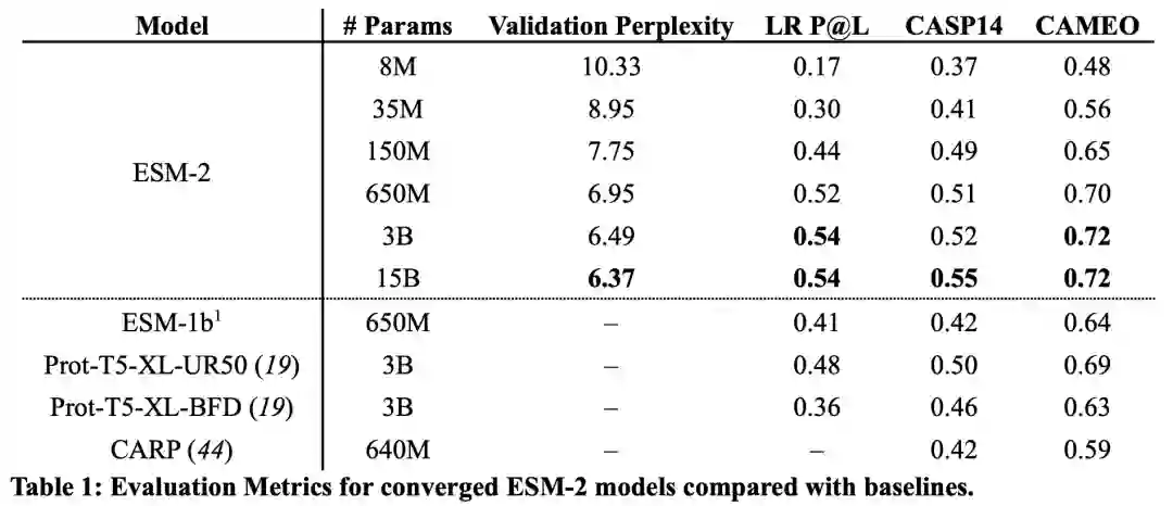 将语言模型的参数扩大到15B,就可以系统地研究规模对蛋白质结构学习的影响。