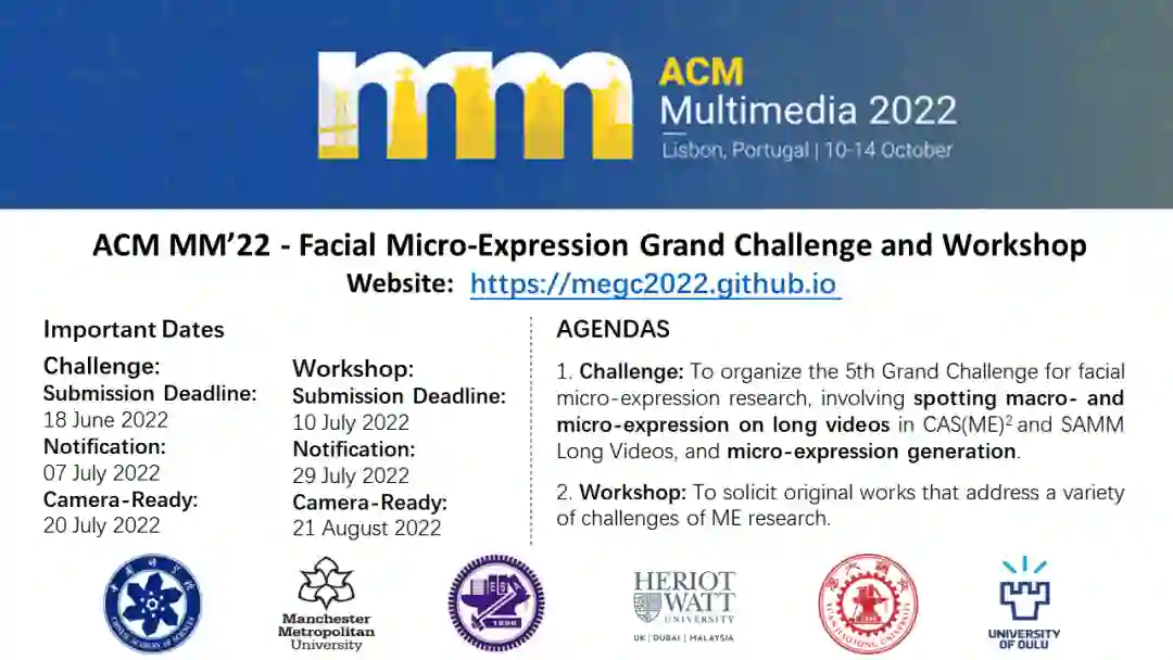 另外,主持人还介绍了将由ACM Multimedia2022举办的微表情研讨会。相关细节将会在网站上(https://megc2022.github.io)陆续发布,欢迎大家关注。
