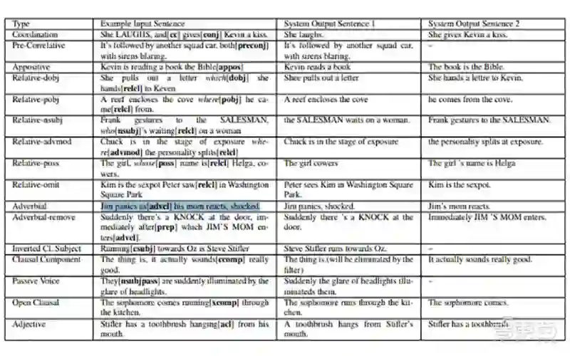 简化后的方法能更容易的提取脚本中的关键信息,新研发的系统能够自主地将复杂句子拆分,并组装成更简单的句子,对其进行递归处理,直到不可能进一步简化。