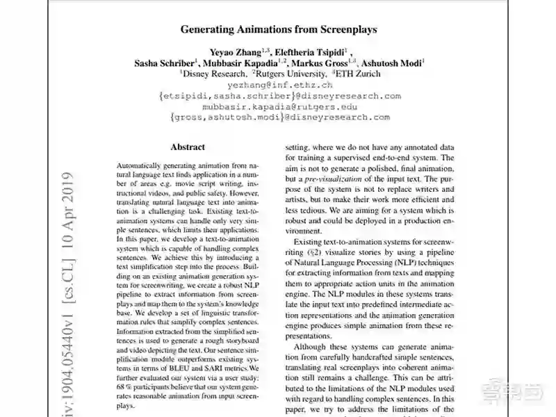 迪士尼罗格斯大学关于AI文本生成动画模型的论文