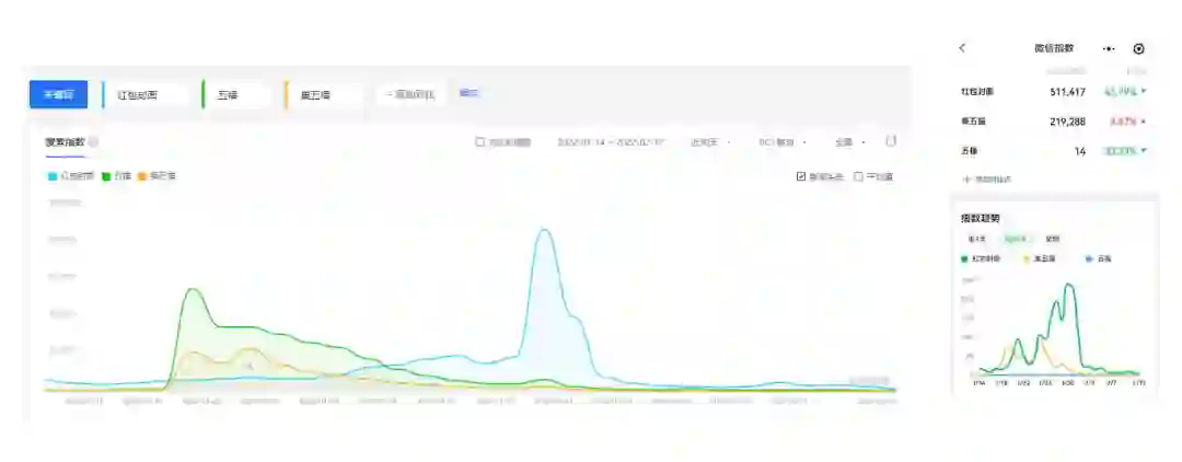 此外,从百度指数和微信指数来说,也是一样的结果(PS:支付宝集五福活动中,五福和集五福都可能是关键词,为了保证对比的一致性,将两个关键词一同计入)。