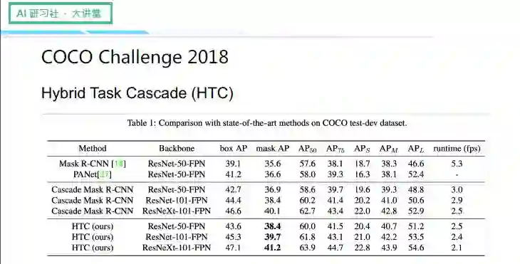 第一,针对 detection 和 segmentation,我们提出了 Hybrid Task Cascade,简称 HTC;