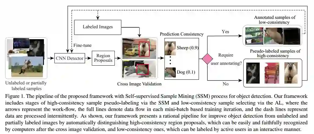 摘要:Though quite challenging, leveraging large-scale unlabeled or partially labeled images in a cost-effective way has increasingly attracted interests for its great importance to computer vision. To tackle this problem, many Active Learning (AL) methods have been developed. However, these methods mainly define their sample selection criteria within a single image context, leading to the suboptimal robustness and impractical solution for large-scale object detection. In this paper, aiming to remedy the drawbacks of existing AL methods, we present a principled Self-supervised Sample Mining (SSM) process accounting for the real challenges in object detection. Specifically, our SSM process concentrates on automatically discovering and pseudo-labeling reliable region proposals for enhancing the object detector via the introduced cross image validation, i.e., pasting these proposals into different labeled images to comprehensively measure their values under different image contexts. By resorting to the SSM process, we propose a new AL framework for gradually incorporating unlabeled or partially labeled data into the model learning while minimizing the annotating effort of users. Extensive experiments on two public benchmarks clearly demonstrate our proposed framework can achieve the comparable performance to the state-of-the-art methods with significantly fewer annotations.