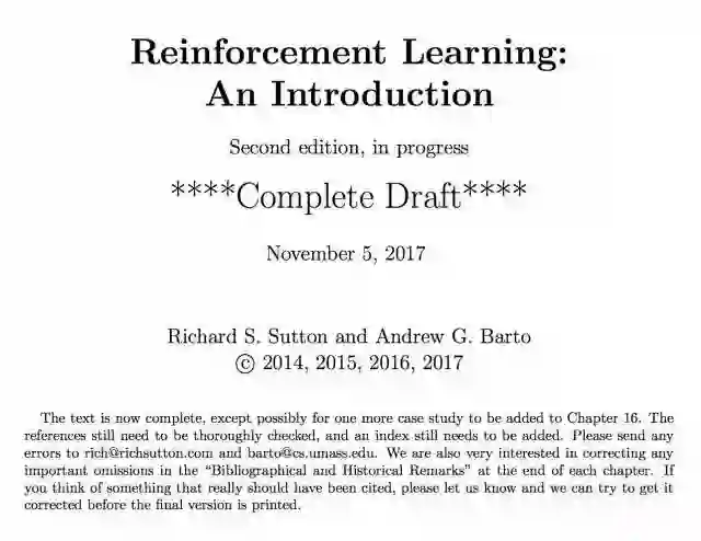 如果你研究过强化学习,可能对他和巴尔托(Andrew Barto)合著的一本书很熟悉:《强化学习导论》(Reinforcement Learning, an introduction)。这本书被引用了2.5万多次,如今,第二版即将出版,全书草稿也已经在网上公开。