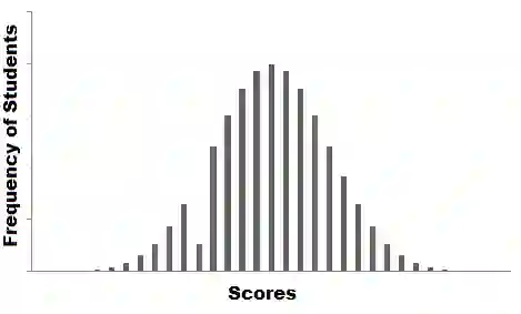 上面展示的图形称为数据的频率分布。其中有一个平滑的曲线,但你注意到有一个异常情况了吗?在某个特定的分数范围内,数据的频率异常低。所以,最准确的猜测就是丢失值了,从而导致在分布中出现了凹陷。