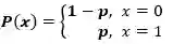 概率质量函数由下式给出:px(1-p)1-x, 其中x € (0, 1)。它也可以写成: