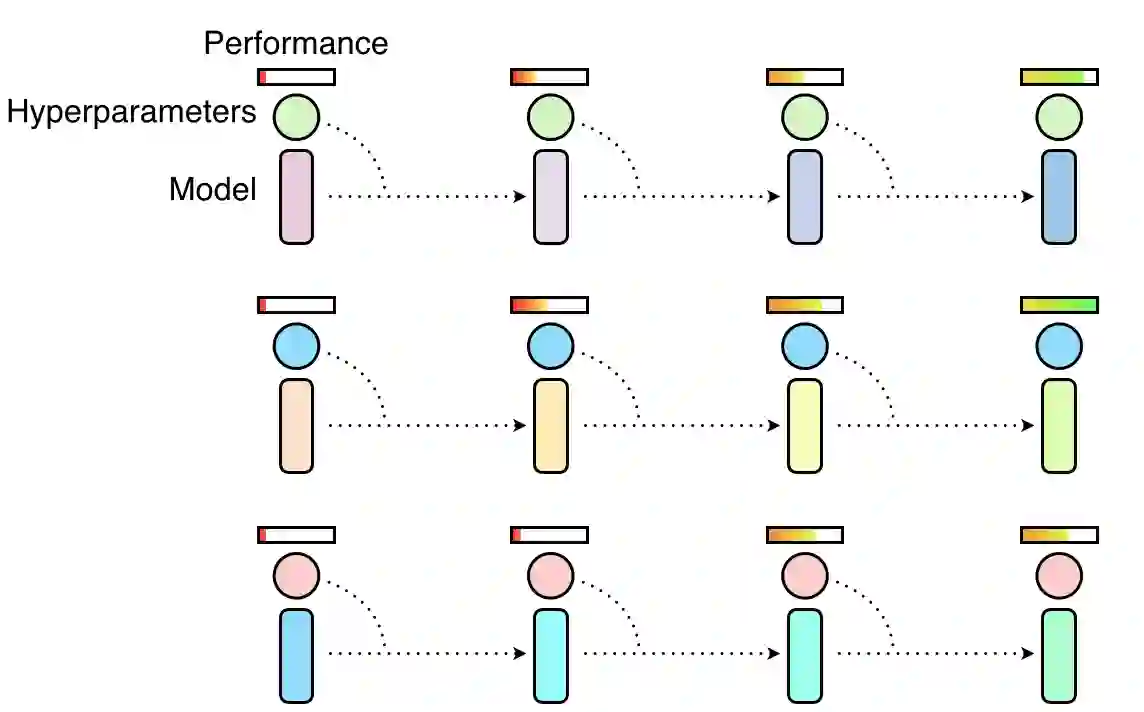 PBT的神经网络训练从随机搜索开始,但允许个体利用其他个体的部分结果,并随着训练的进行探索形成新超参数