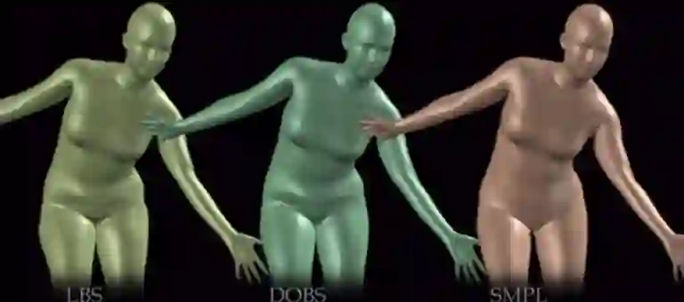 首先我们可以用现成的SMPL模型在刚才的2D pose姿势上构建一个初步的骨骼蒙皮。注意,SMPL骨骼蒙皮只是赤裸的、根据其他数据经验得到的,和2D输入图片的场景大不相同。但是SMPL模型支持maya、unity等常用3D软件,支持python,并且对蒙皮皱褶等处理较好: