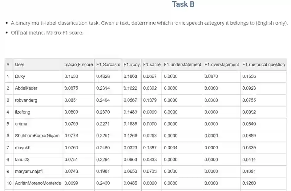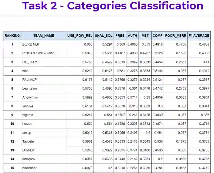 在SemEval2022的“居高临下的情感检测”任务(任务4,包含两个子任务),择数科技学员通过尝试多种不同的BERT花式分类调参方法,在该任务大赛道的前十中独占三席,且取得了最高前5的成绩。