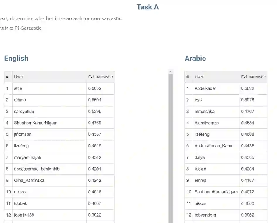在“英文和阿拉伯文中的讽刺语句识别”任务(任务6,包含3个子任务,两种语言),择数科技学员通过基于对比学习的数据扩充和基于Prompt的语义表征方法,在该任务的大赛道的前十中独占二席,且取得了最高前3的好成绩。
